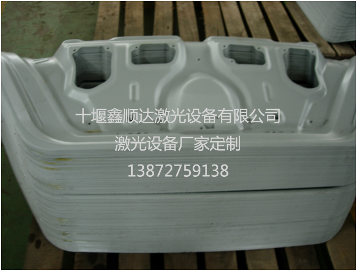 汽車零部件的鈑金覆蓋件包含機蓋、后蓋箱、水箱架、保險杠、葉子板、車門,還有底盤件的元寶梁、控制臂、后橋等等,往往需要三維的切割,包括修邊和沖孔等,傳統(tǒng)工藝有開模沖壓,等離子切割或五軸機床激光切割等。在模具的制作過程中,修邊、沖孔工序一直是難點,特別是一些結構復雜的斜切、斜沖、斜翻等大型汽車模具。修邊線的確定需反反復復摸索幾次甚至十多次,給鉗工、加工設備帶來了極大的工作量,不但對鉗工的技能水平提出了較高的要求,而且會嚴重地影響后工序模具的調試。且現(xiàn)實中有很多修邊、沖孔模的切刃材質從成本上考慮采用了合金鋼,如Cr12、Cr12MoV等,如果采用傳統(tǒng)的修邊模制作方法,就難免會對刃口進行多次堆焊,由于諸如上面的材料在進行多次堆焊的過程中,容易開裂而致使鑲件報廢,不得不重新補料再加工,這樣,不但周期會被滯后,而且模具的制作成本也會大幅增加。而且在批量不大或是預制階段,開發(fā)模具費用高,周期長,更改不靈活。等離子切割的方式,導致切口邊緣不整齊,需要下一道工序來打磨,費時費工。小孔只能用手鉆或沖床來加工,工作效率低下。而且手持離子設備對人體有一定的輻射,粉塵嚴重污染人體健康。具體工藝流程如下: